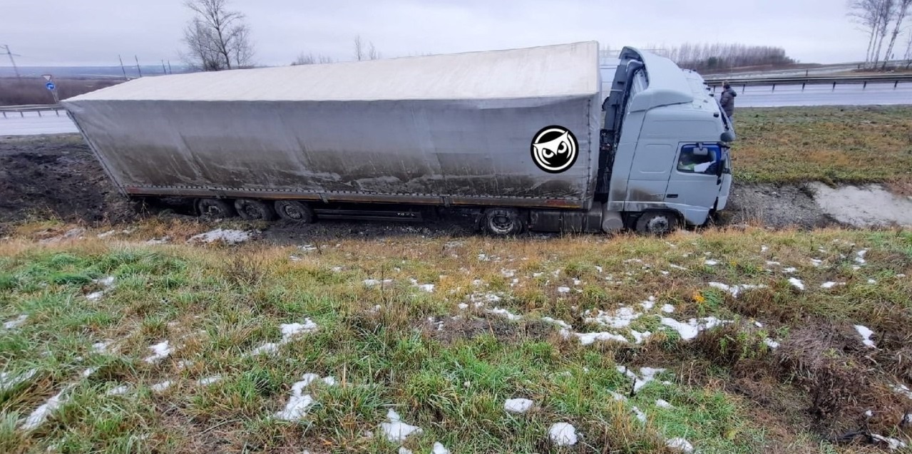 При въезде в Пензу в кювет улетела фура