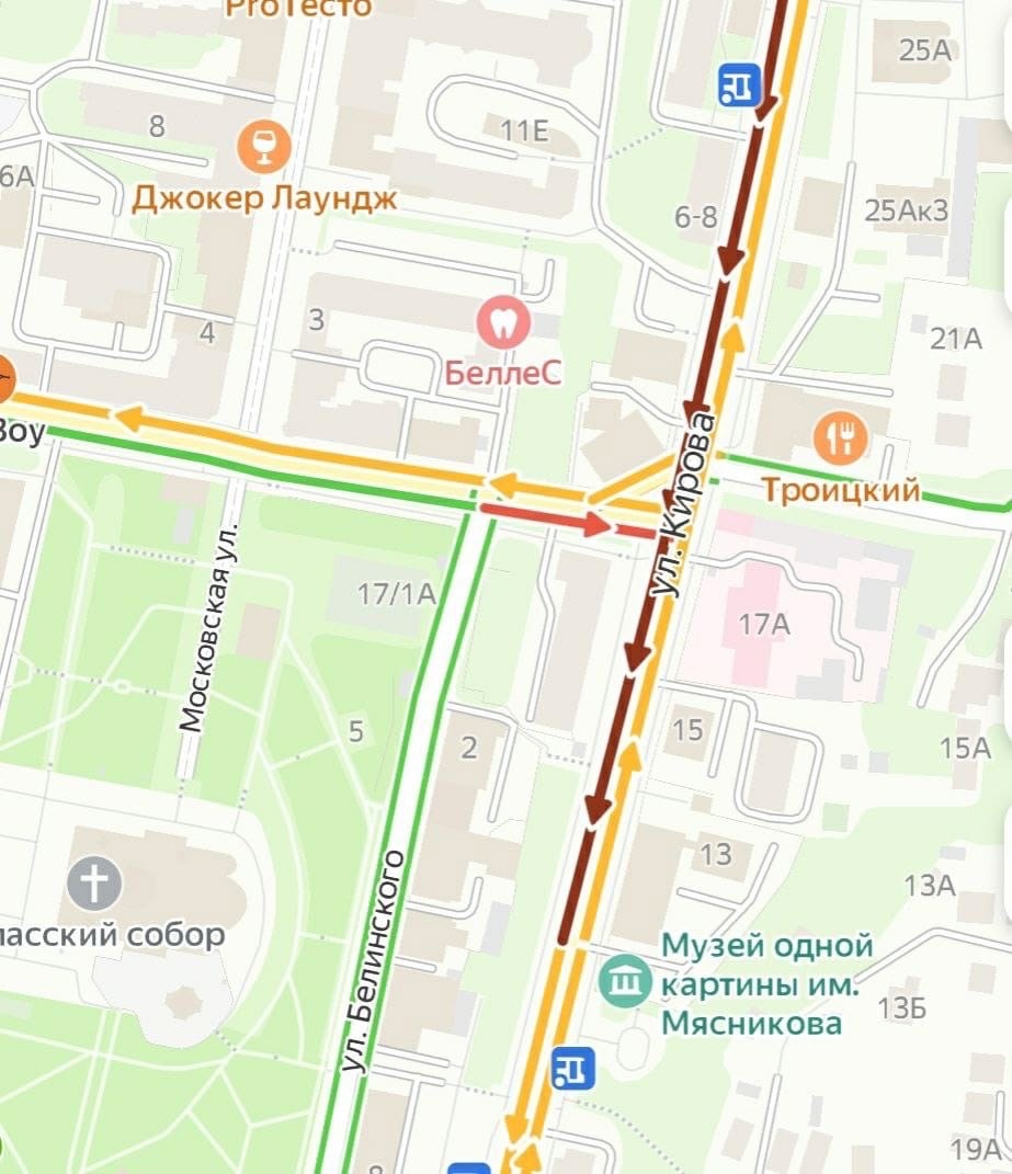 Об образовавшейся пробке свидетельствует и скриншот с «Яндекс.карт». Свидетели инцидента сообщают, что к месту ДТП прибыл реанимационный автомобиль.
