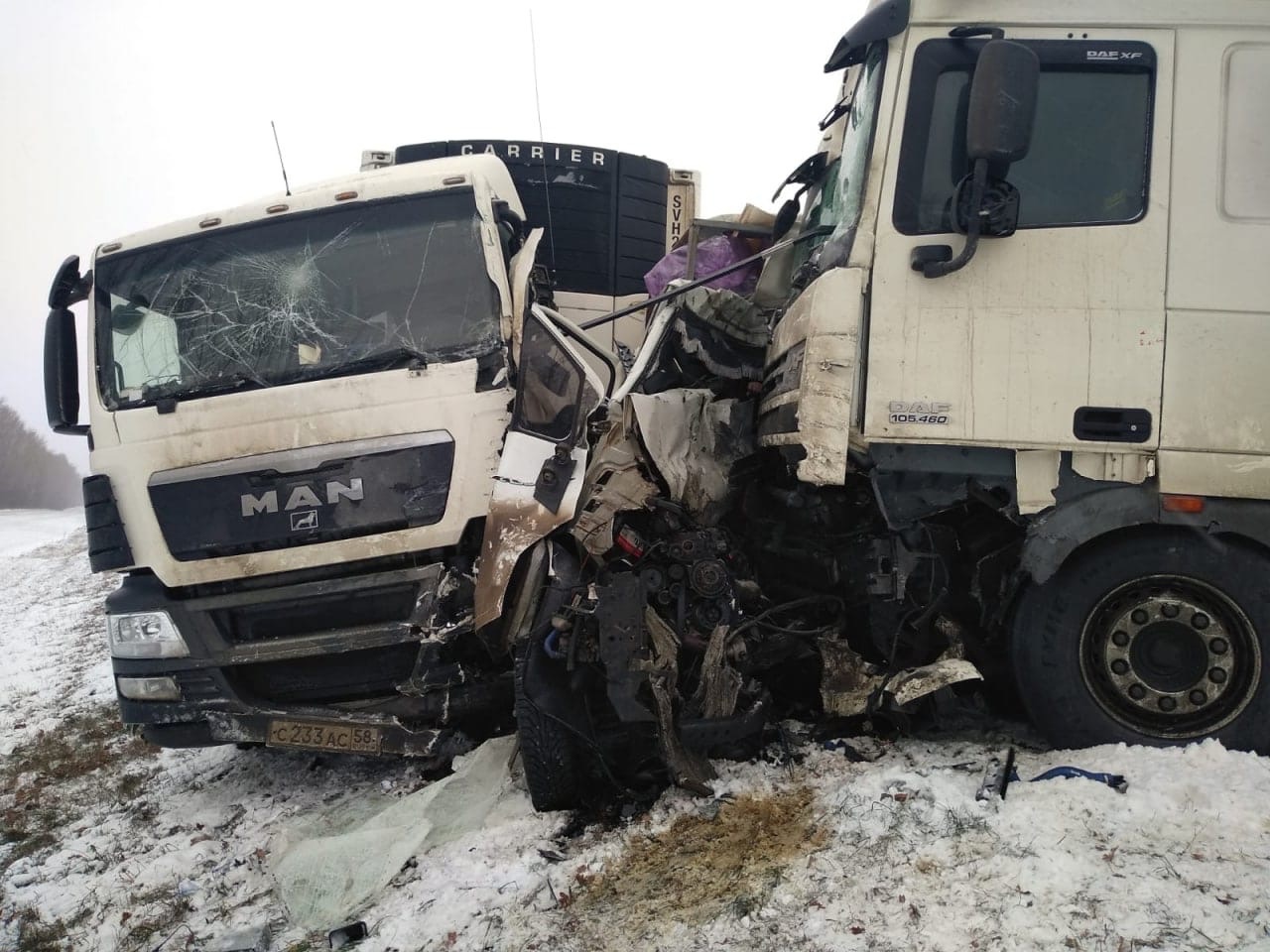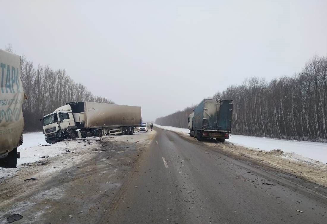 Опубликованы фото с места смертельного ДТП с грузовиками в Пензенской области