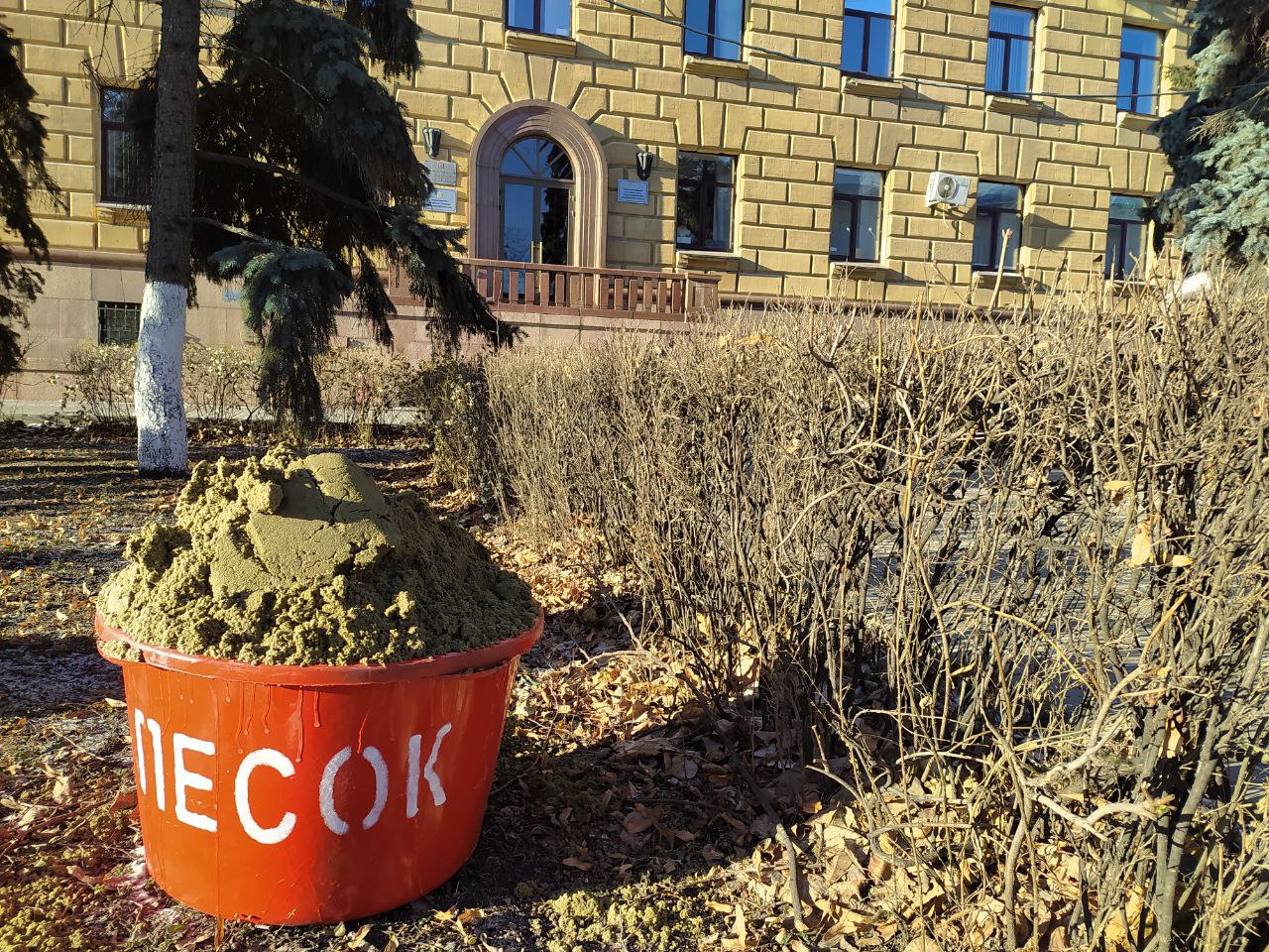 На Московской улице отсутствуют и красные тазики с песком, которые расставлены коммунальщиками по всему городу.