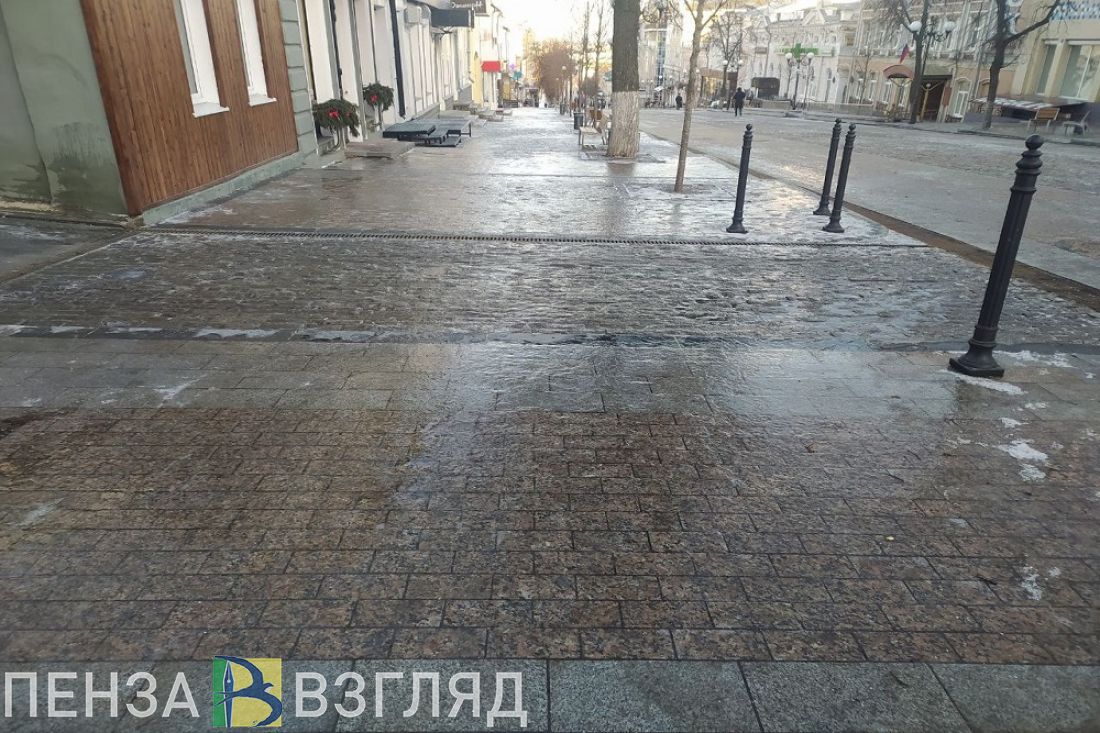Ранее мы писали, что верхняя часть Московской улицы превратилась в одно из самых травмоопасных мест в Пензе. Из-за воскресной непогоды реконструированный участок главной пешеходной улицы Пензы стал ледяной горкой.