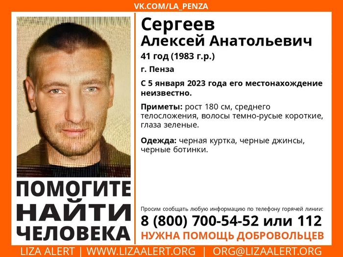 С 5 января 2023 года у родственников и близких нет информации о местонахождении пензенца Алексея Сергеева 1981 года рождения.