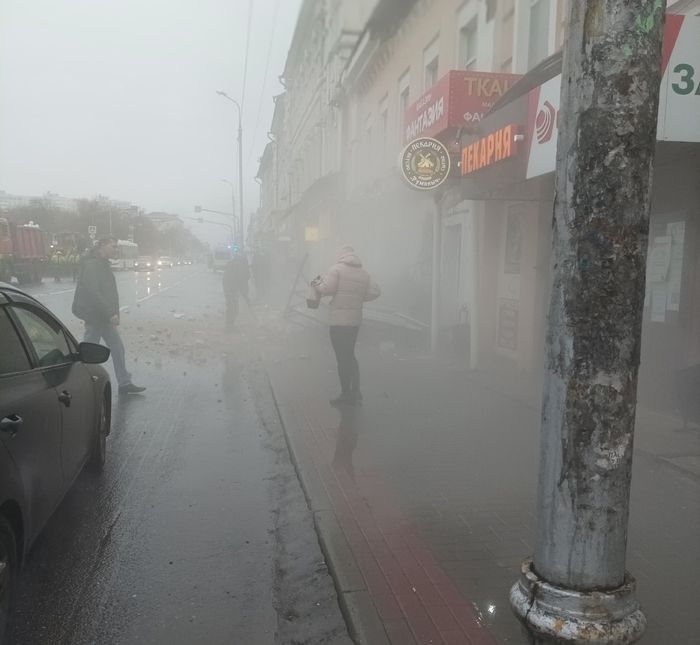 «Время 08:35. Обрушилась часть стены, пострадавших нет, доля секунды и девушку бы завалило», - информирует автор поста.
