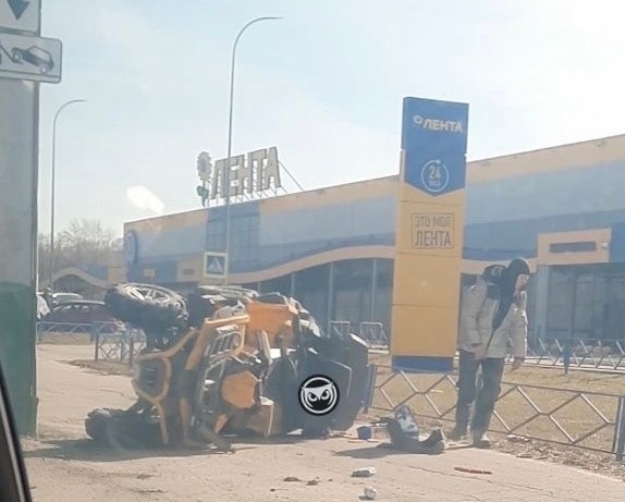 «ТЦ «Лента», ДТП, квадрик на боку», - написал автор поста. На опубликованных в сообществе снимках запечатлено перевернувшееся средство передвижения. Также запечатлен легковой автомобиль со вмятиной на передней части. Обстоятельства ДТП уточняются.