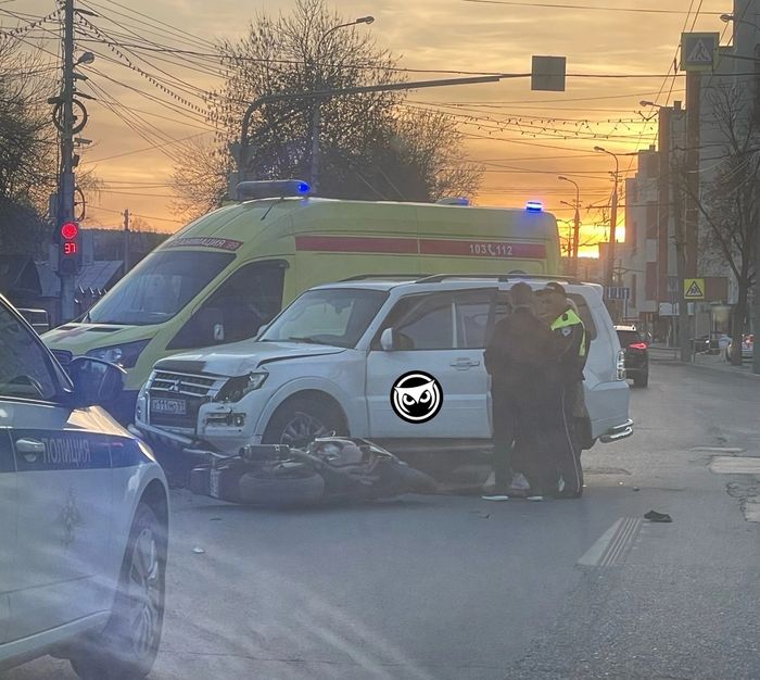 В группе «Сова Пенза авто» опубликовали фотографию, сделанную в 18:40 на месте дорожно-транспортного происшествия. На ней видно лежащий на дороге мотоцикл и легковой автомобиль с механическими повреждениями.