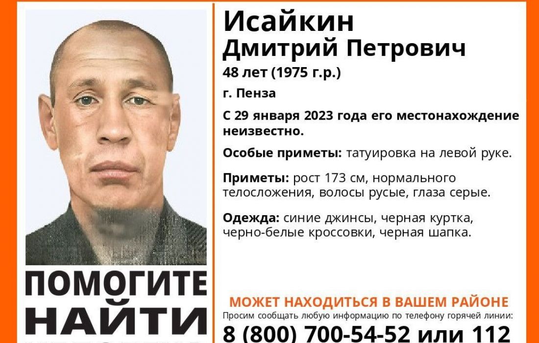 В Пензе пропал 48-летний Дмитрий Исайкин