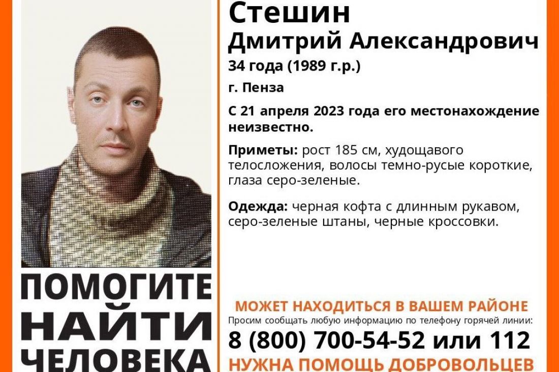 В Пензе ищут пропавшего Дмитрия Стешина.