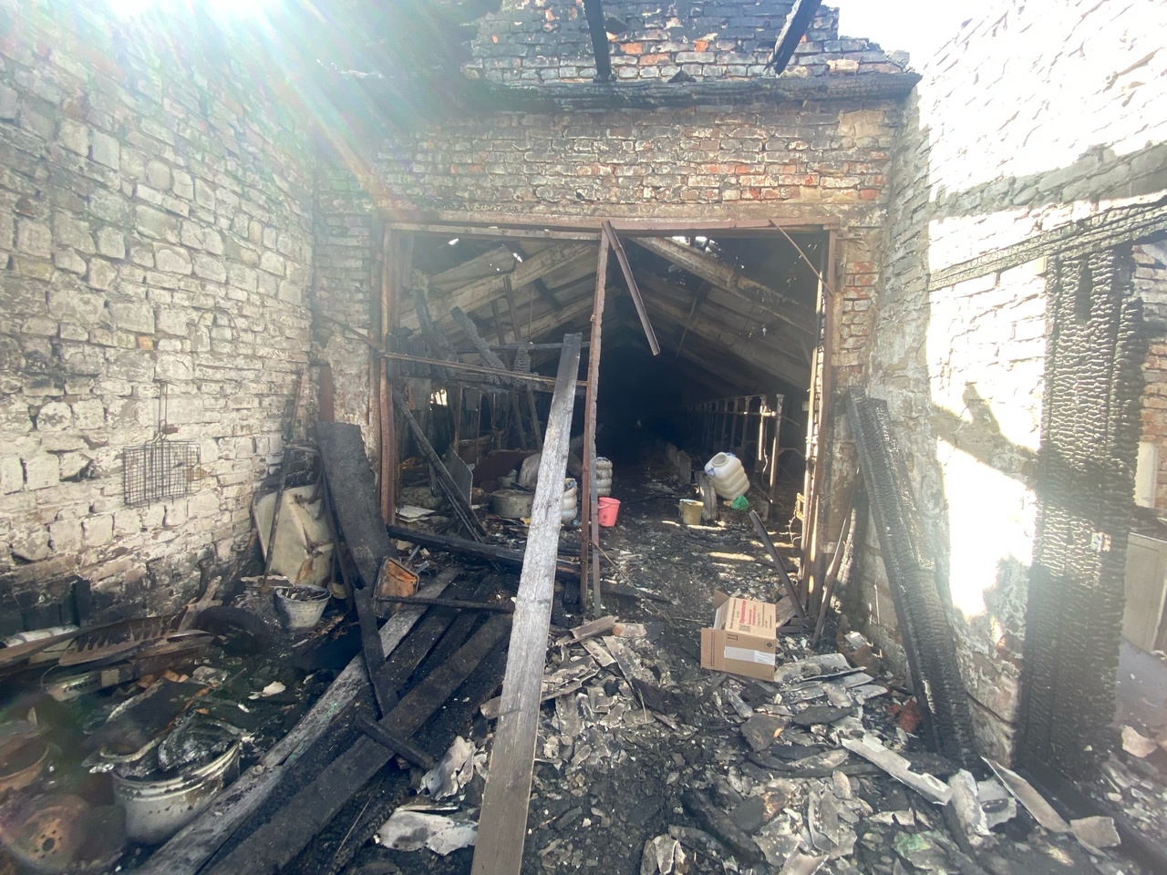 Появились фотографии с места пожара в строении для животных в Каменском районе
