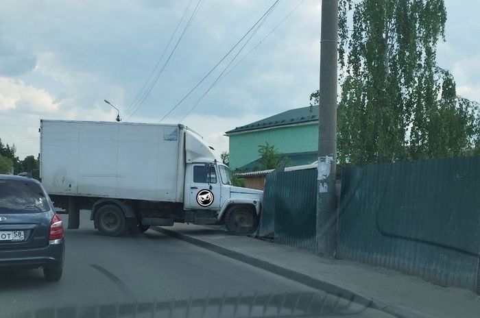 Фотографии с места аварии появились в группе «Сова Пенза авто» социальной сети «ВКонтакте». На снимках видно, что водитель грузовика по неизвестным причинам потерял управление и врезался в забор, ограждающий территорию одного из домовладений.