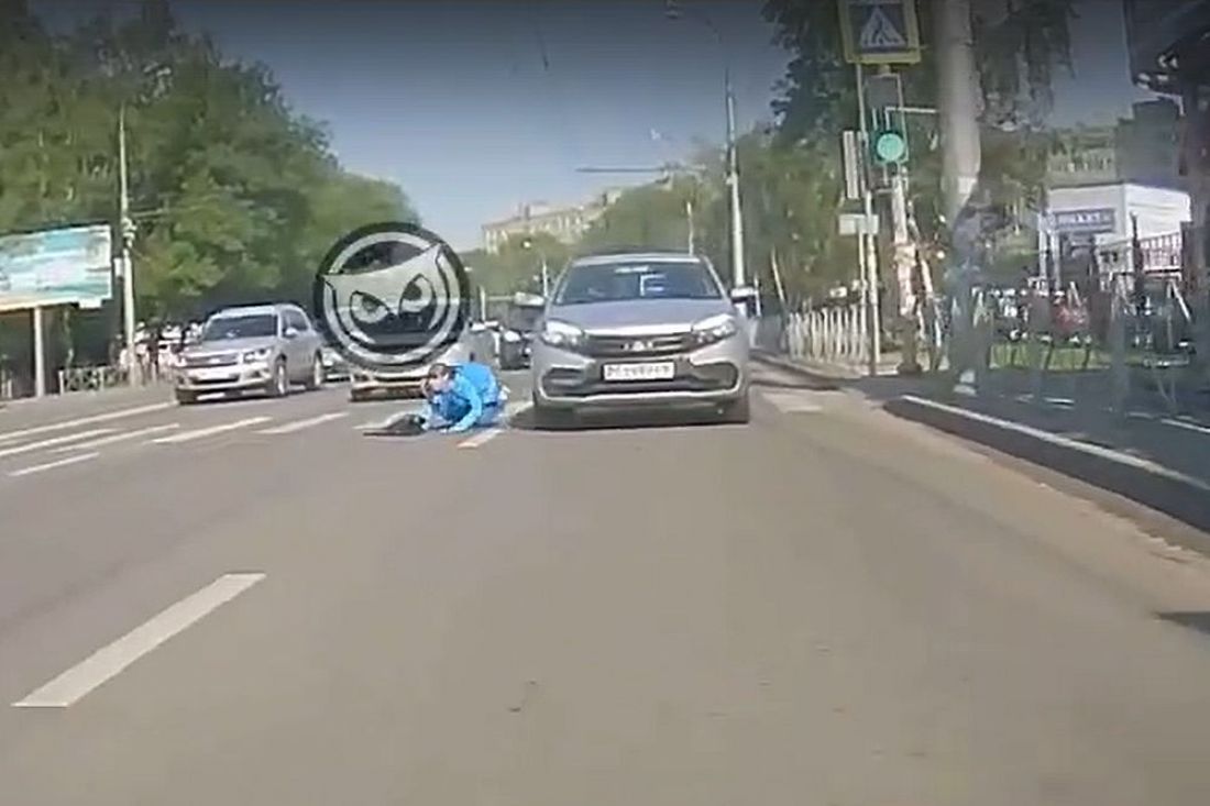 Ролик был опубликован в группе «Сова Пенза авто». Видно, что женщина решила бегом пересечь дорогу по пешеходному переходу, на который уже выехала легковая машина. Экстренное торможение, предпринятое водителем, не помогло.