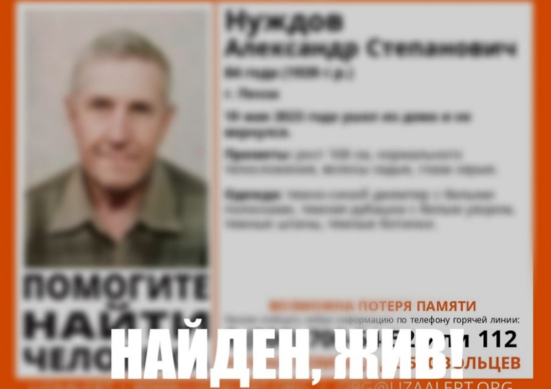 «Нуждов Александр Степанович найден, жив!» - говорится в комментарии.