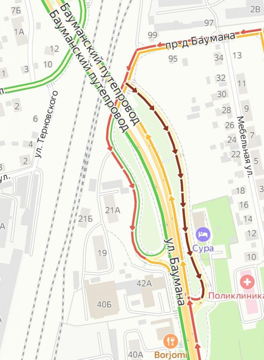 Очевидцы сообщили, что на въезде на Бауманский путепровод со стороны центра лежит мертвый человек, накрытый белой простыней.