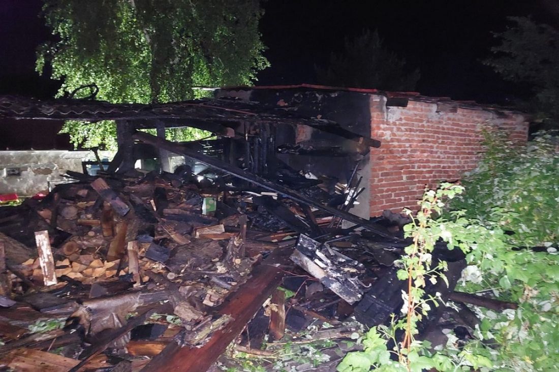 Появились фотографии сгоревшего дощатого сарая в Каменке