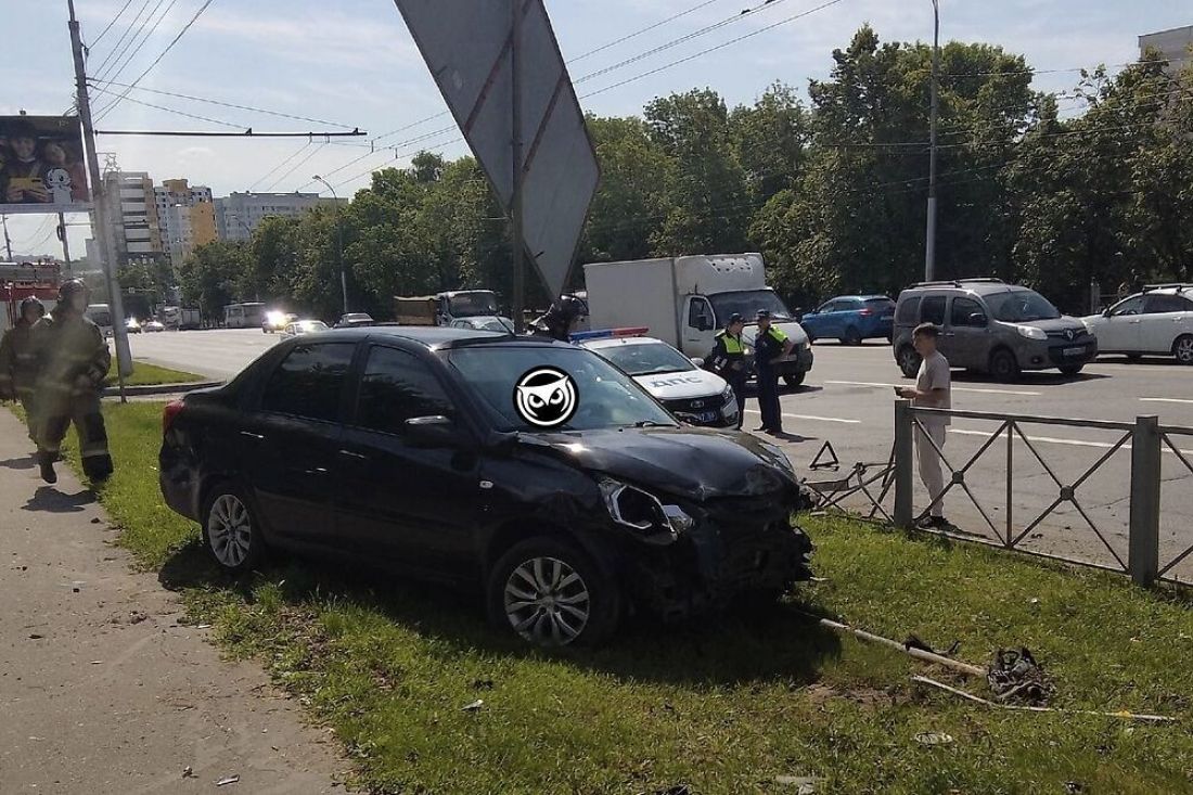 В Пензе иномарка протаранила забор и едва не сбила информационный щит