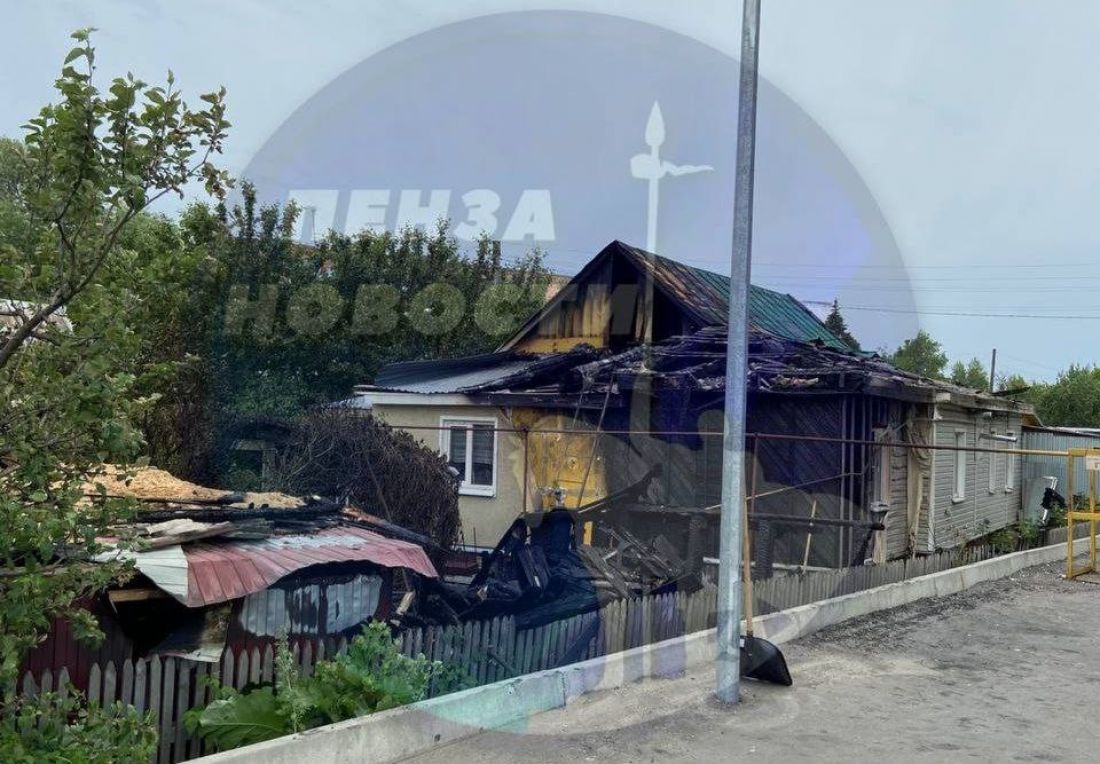 Пресс-служба Главного Управления МЧС России по Пензенской области сообщала, что сгорела кровля на площади 120 квадратных метров, а также надворные постройки размером 30 квадратных метров. На кадре видно разрушенное здание.