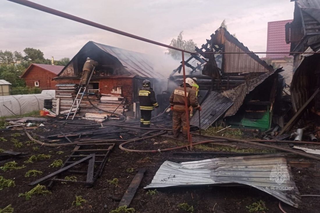 Обгорела кровля по всей площади кирпичной хозяйственной постройки размером 6х5 метров, крытой железом по деревянной обрешетке», - сообщили в пресс-службе ведомства.