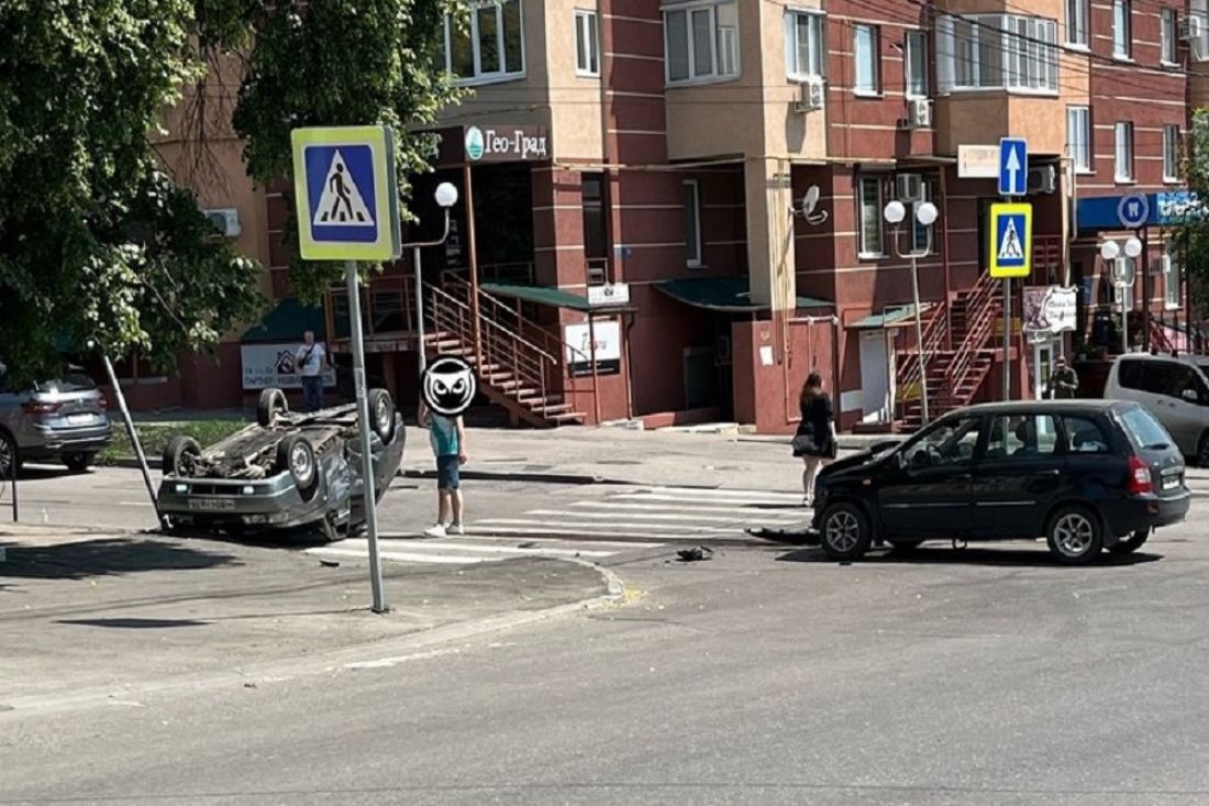 На фотографиях можно увидеть, что в результате аварии один из пострадавших автомобилей перевернулся на крышу. Машина лежит на пешеходном переходе, затрудняя движение.