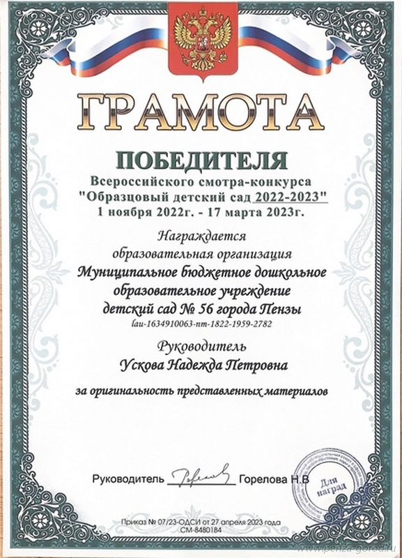 В число тысячи лучших дошкольных учреждений страны вошел детский сад №56 города Пензы.