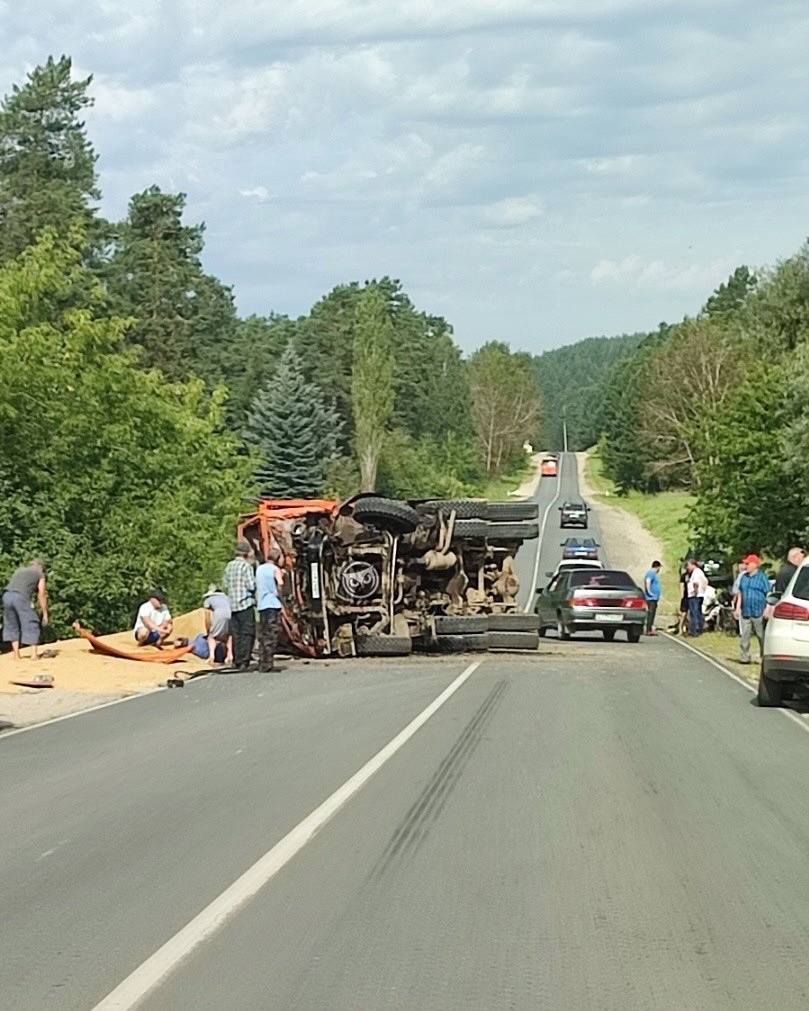 Судя по фото, оба транспортных средства получили серьезные механические повреждения. Одним из пострадавших оказался КАМАЗ, который перевозил песок, а вторым - легковой автомобиль.