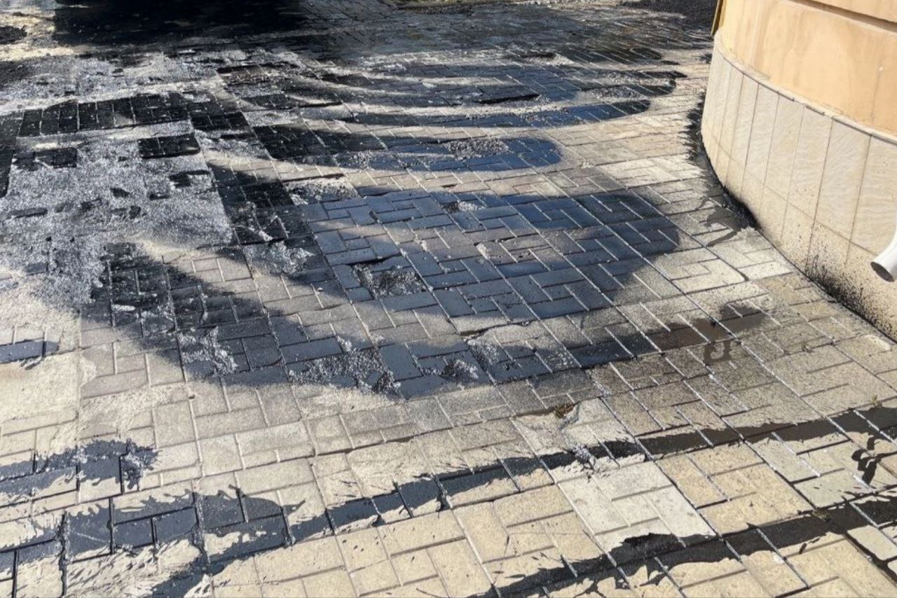 В пресс-службе мэрии заявили, что для подготовки участка под асфальтировку не было необходимости полностью снимать старую плитку. Рабочие убрали разрушенные элементы, сделали прометание территории и залили ее битумом.