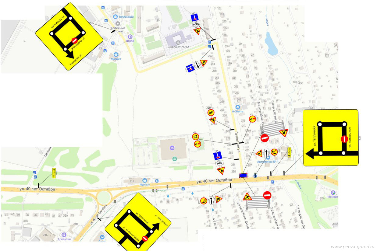 «Рекомендуем автомобилистам заранее ознакомиться со схемой организации дорожного движения и приносим извинения за временные неудобства», – написали представители администрации города Пензы и опубликовали схему движения на сайте.