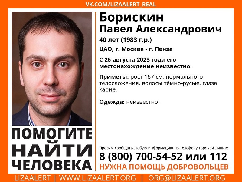 Поисками мужчины занимаются близкие, полиция и волонтеры. В телеграм-канале пензенского поискового отряда «Лиза Алерт» сообщается, что его местонахождение неизвестно с 26 августа. Он может быть как в Пензе, так и в Москве.