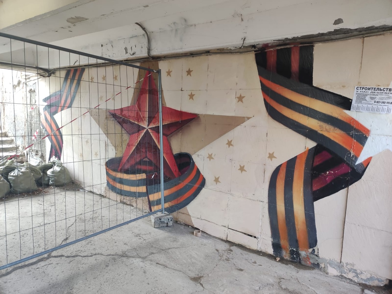 На своей странице в соцсети «ВКонтакте» глава города Александр Басенко обратился к горожанам с вопросом о том, что делать с патриотическим граффити на стенах перехода. В комментариях пользователи могут выразить мнение о судьбе изображения.