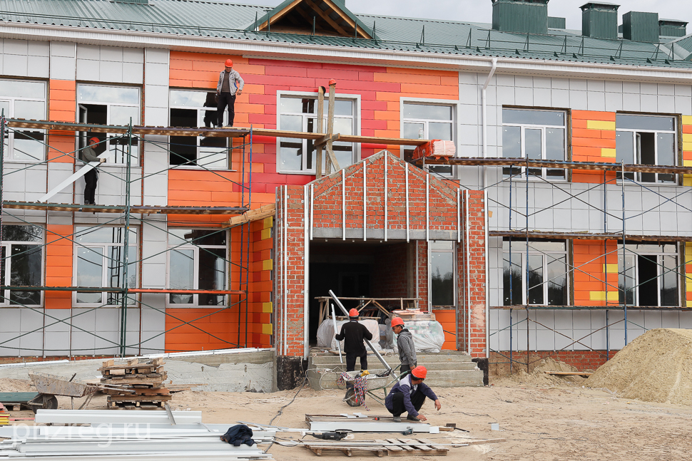 Ему доложили, что возведение здания на 160 мест идет по графику, отделка фасада завершена на 95%. Предстоит асфальтировка подъездной дороги, благоустройство прилегающей территории - его планируют выполнить до конца октября.