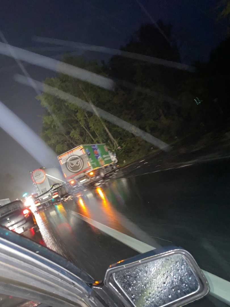 Судя по видео, можно предположить, что в аварию попали два грузовых автомобиля. О погибших и пострадавших в результате дорожно-транспортного происшествия информации нет, на месте работают сотрудники ДПС.