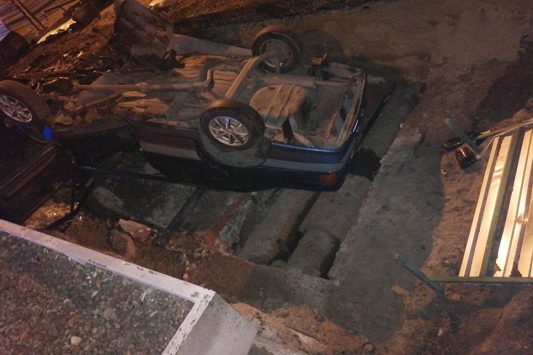 В ночное время суток на одной из улиц Пензы в котлован попал автомобиль с водителем внутри.