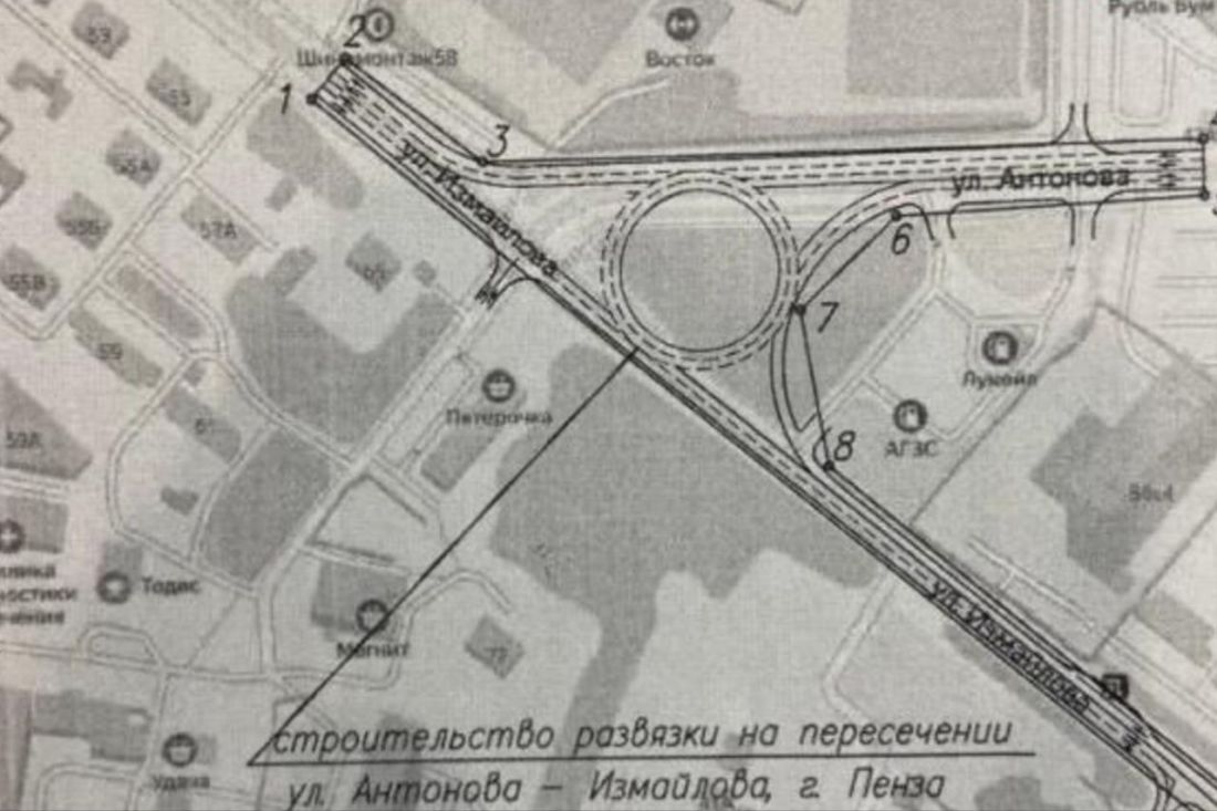 Перекресток с круговым движением планируют построить на перекрестке улиц Антонова и Измайлова в Пензе.