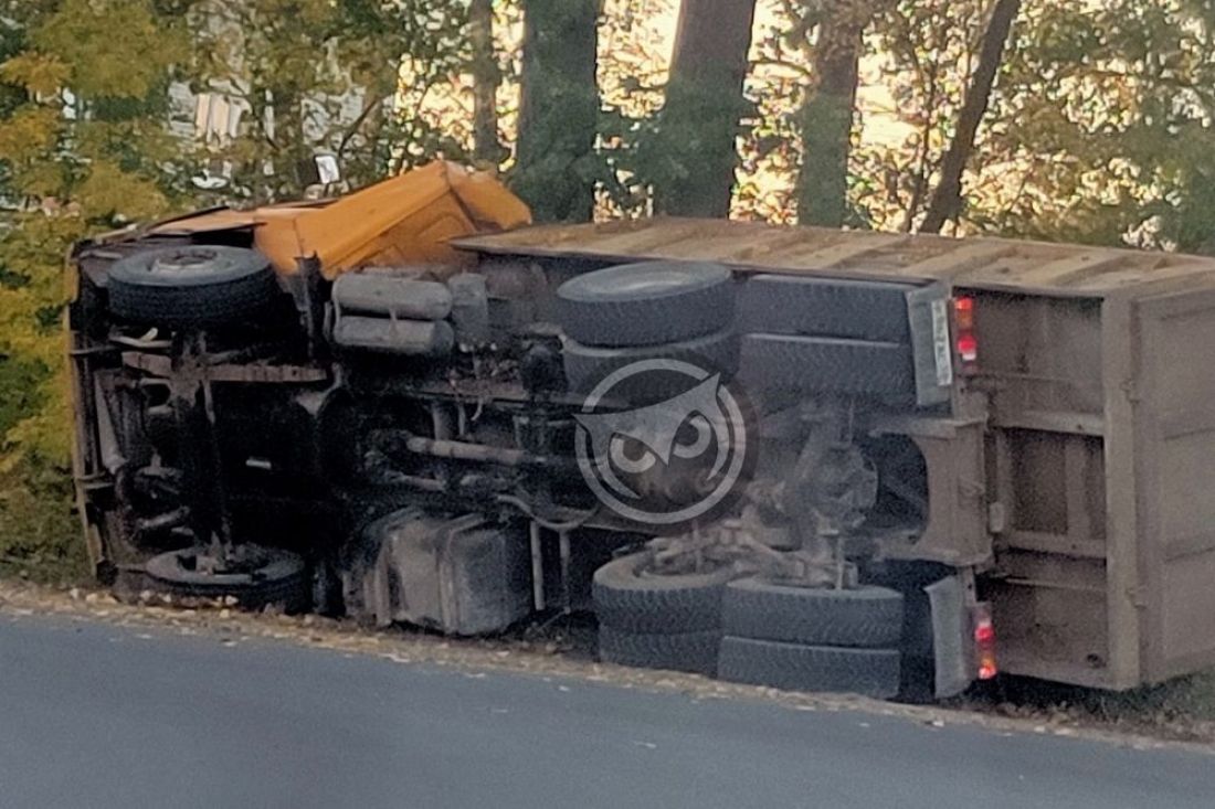 В Пензе сняли на видео, как грузовик опрокидывается на повороте