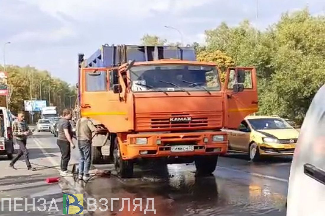 На Окружной улице в Пензе загорелся мусоровоз