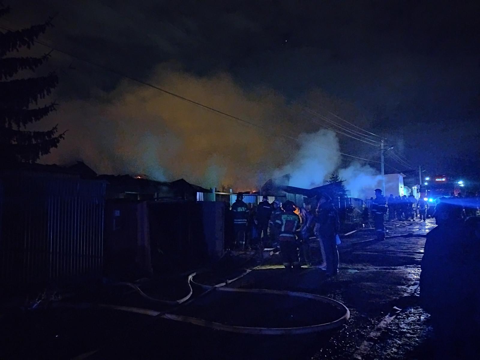 Открытый огонь виден, но уже совсем не такой значительный как на видео. Постройки уничтожены огнем.