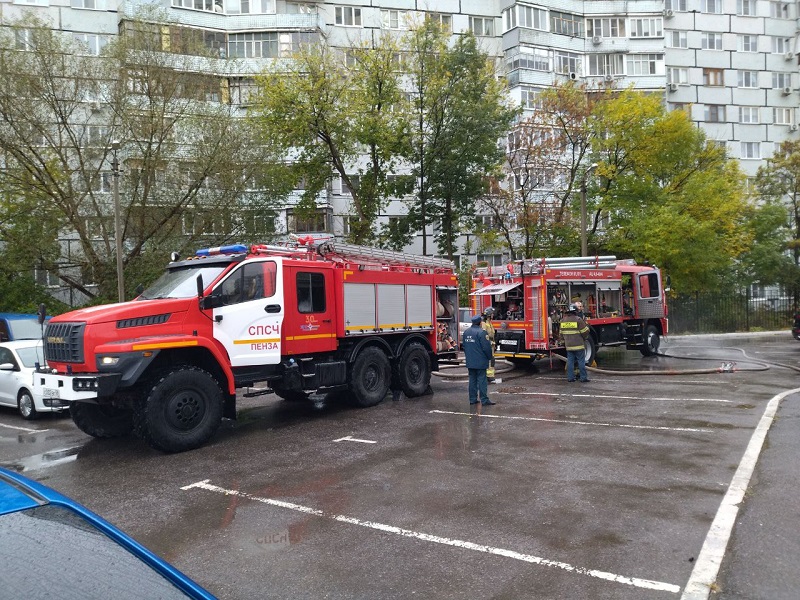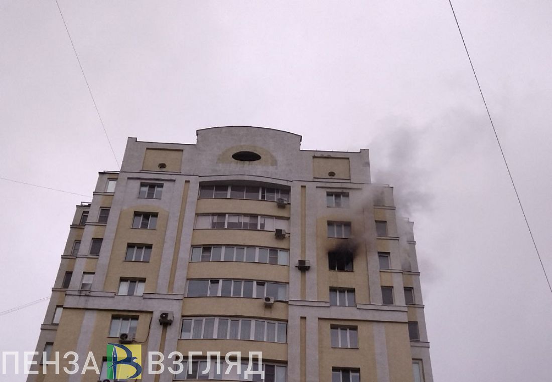 Появились фото и видео пожара в многоэтажке на улице Карпинского в Пензе