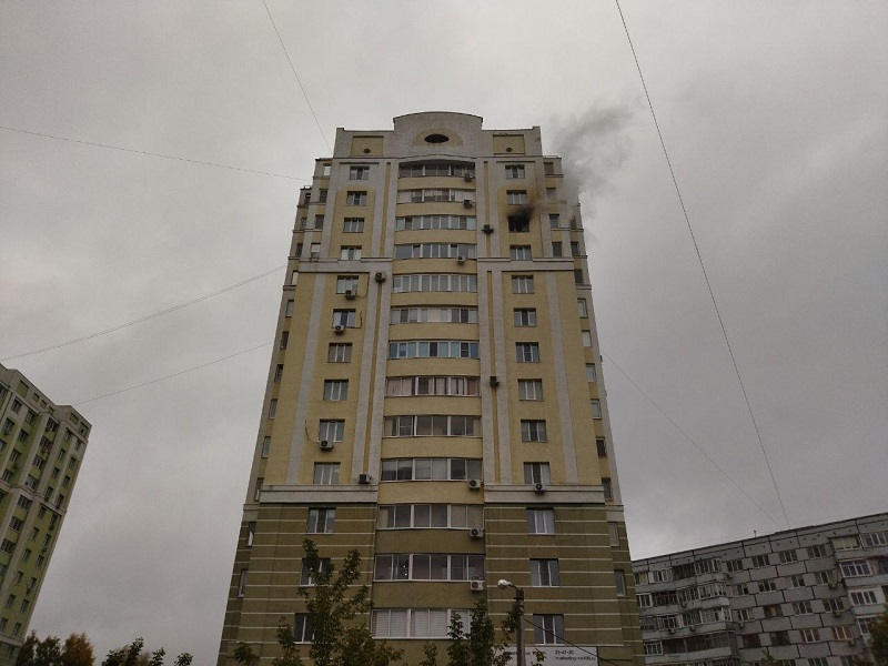 Возгорание случилось, по предварительной информации, на 13 этаже. Из разбитого окна идет густой черный дом, по состоянию на 9:25 открытого огня не наблюдается.