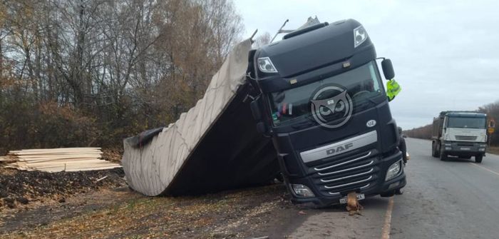 Фотографии с места дорожно-транспортного происшествия были опубликованы в группе «Сова Пенза авто» социальной сети «ВКонтакте». Видно, что водитель потерял управление над большегрузом, из-за чего полуприцеп упал на бок и из него вывалились строительные материалы.