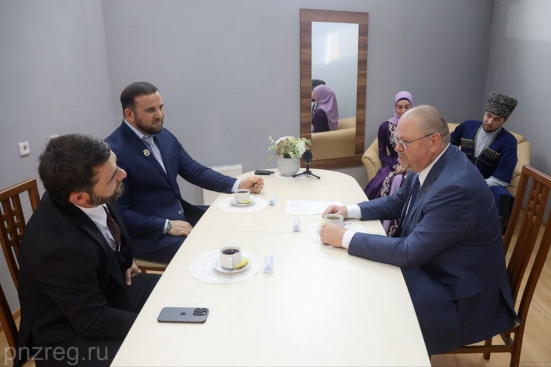 Губернатор Олег Мельниченко встретился с представителем Чеченской Республики в ПФО Рустамом Алимсултановым и руководителем государственного ансамбля танца «Вайнах» Абумуслимом Авторхановым.