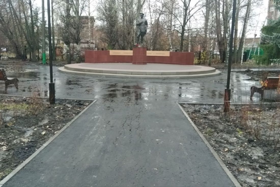 Рабочие заменили плитку, отремонтировали постамент, восстановили памятную надпись на стеле, очистили скульптуру. На территории сквера возле объекта заасфальтировали пешеходные дорожки, высадили кустарник, сообщает пресс-служба областного правительства.