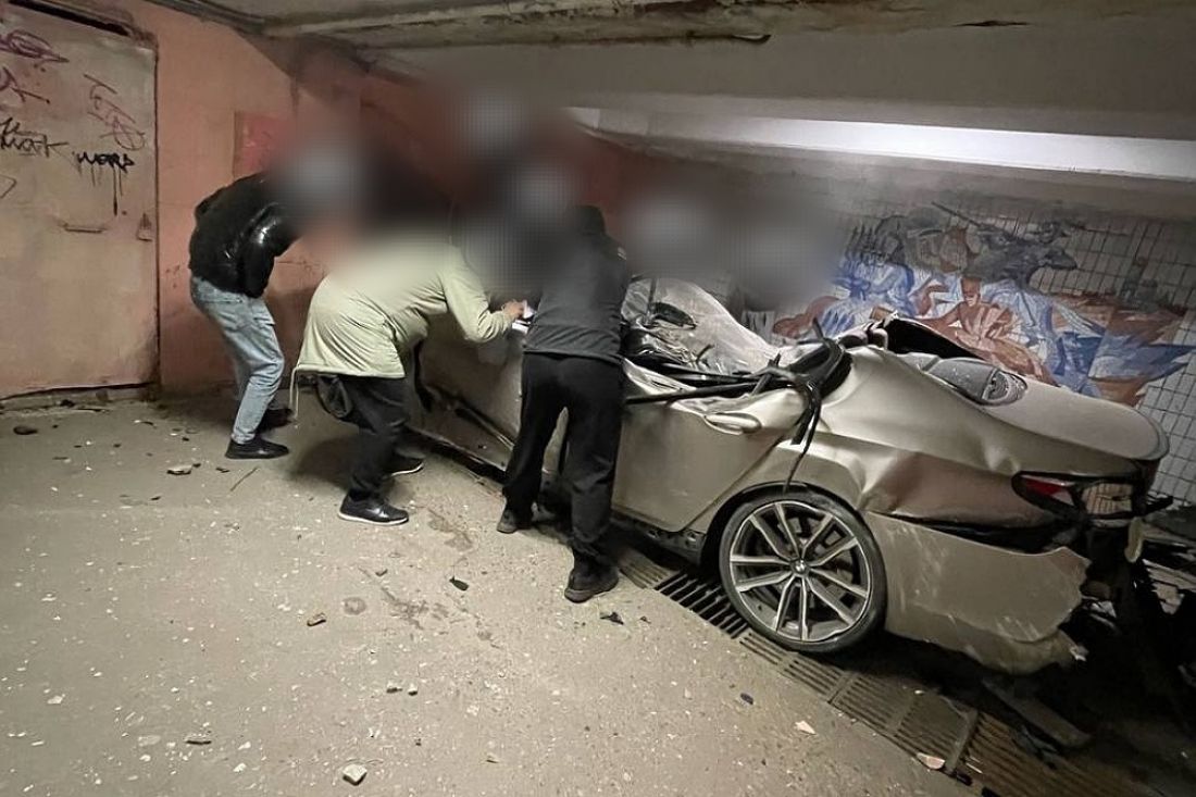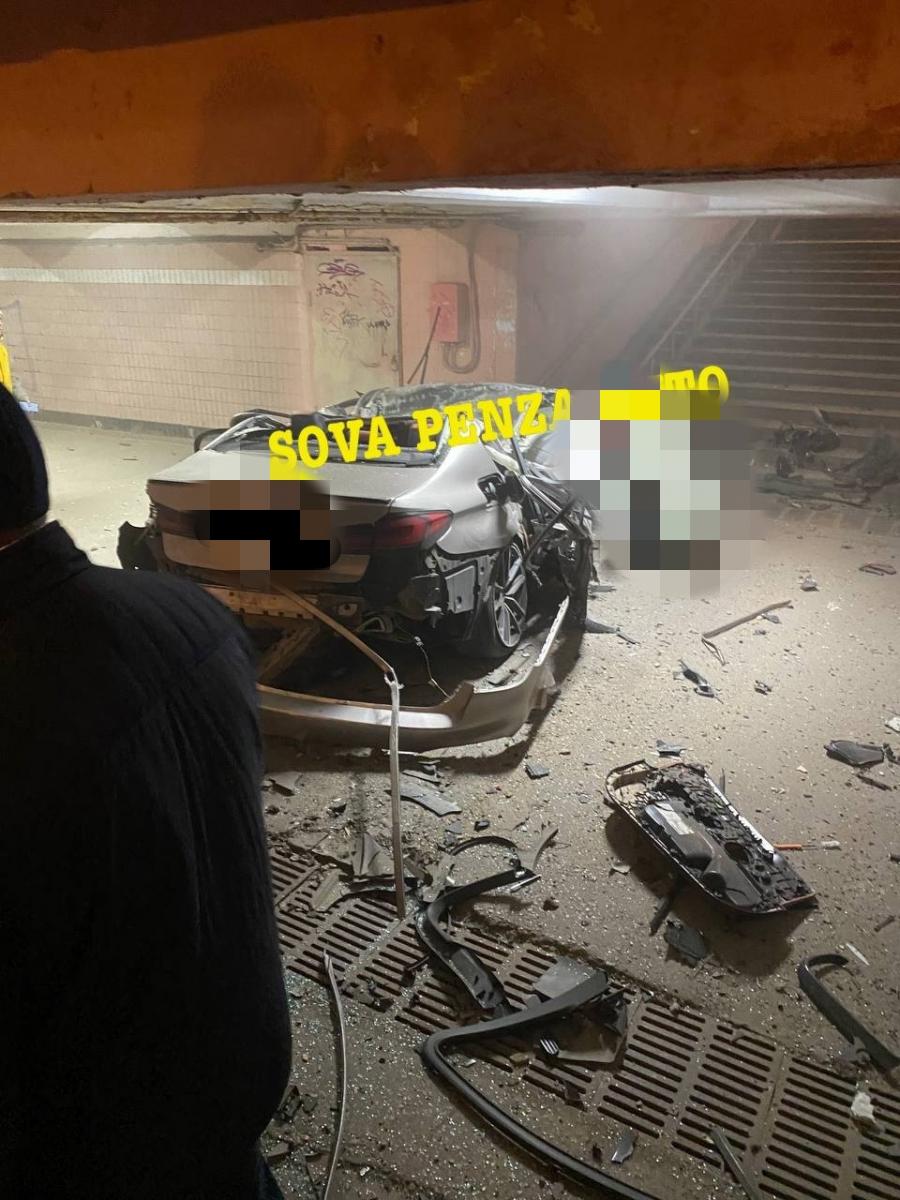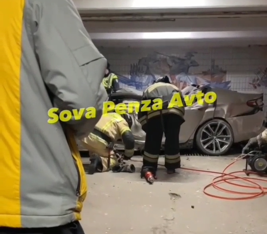 «BMW» улетела в подземный пешеходный переход на проспекте Победы