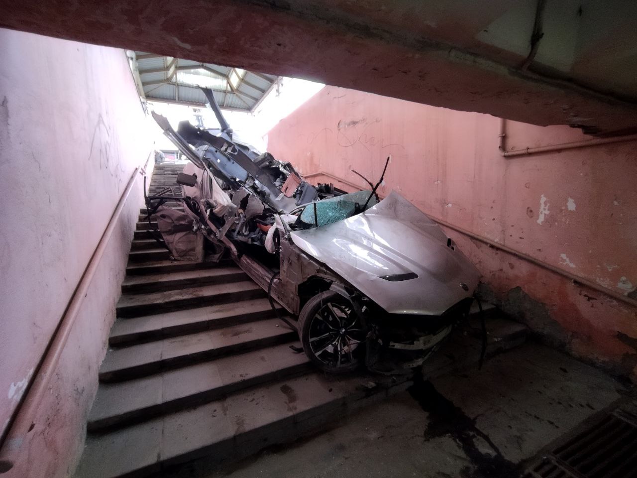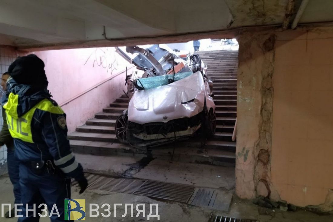 Начинается эвакуация BMW из подземного пешеходного перехода в Пензе после ДТП