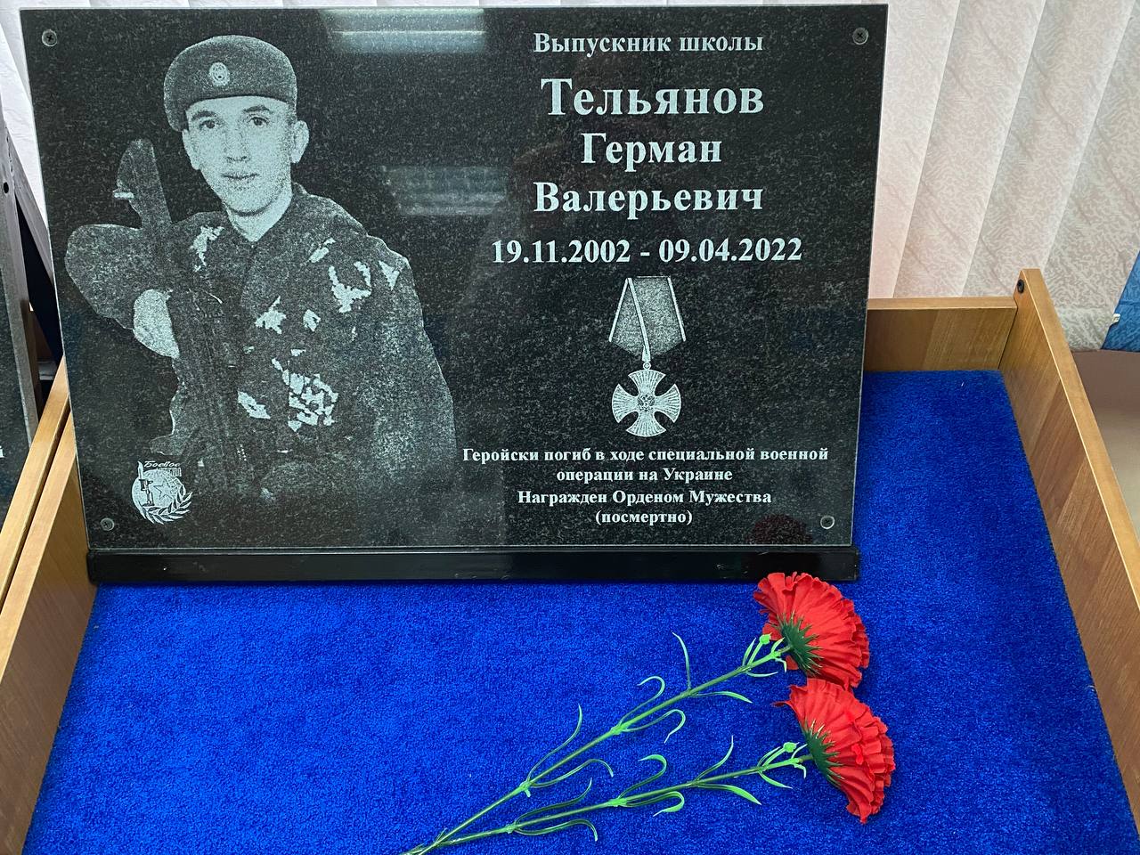 В прошлом году в школе была открыта мемориальная доска в память о выпускнике.