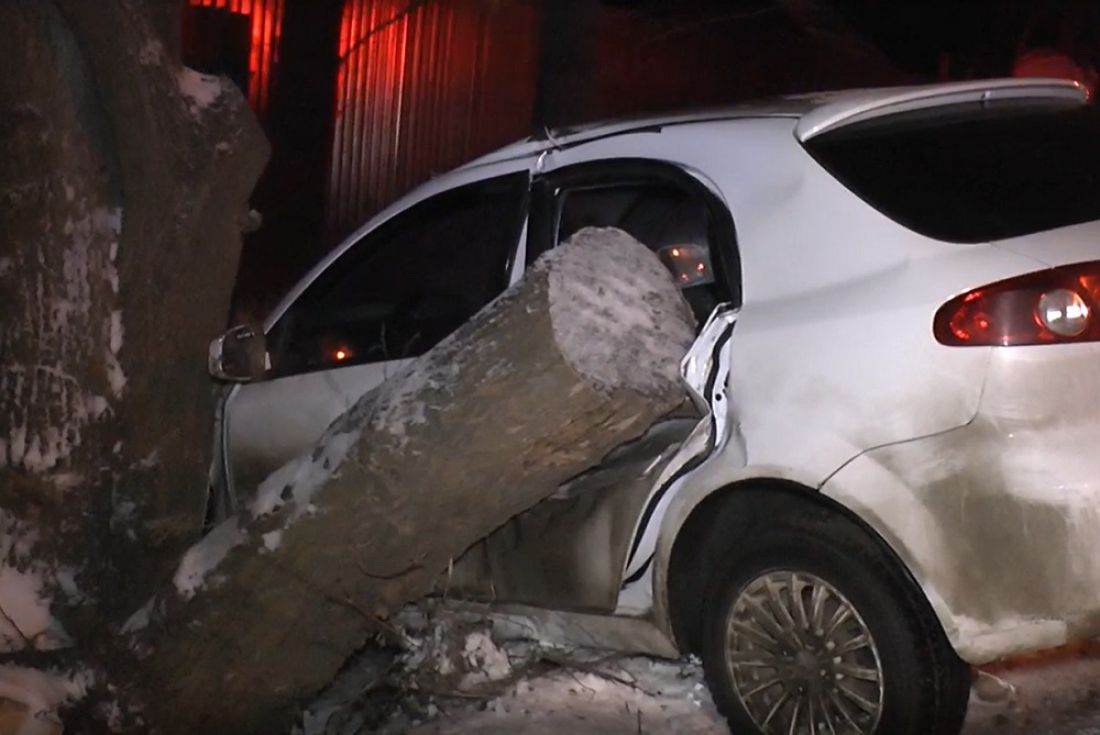 Появилось видео с места ДТП с машиной, врезавшейся в дерево в Пензе