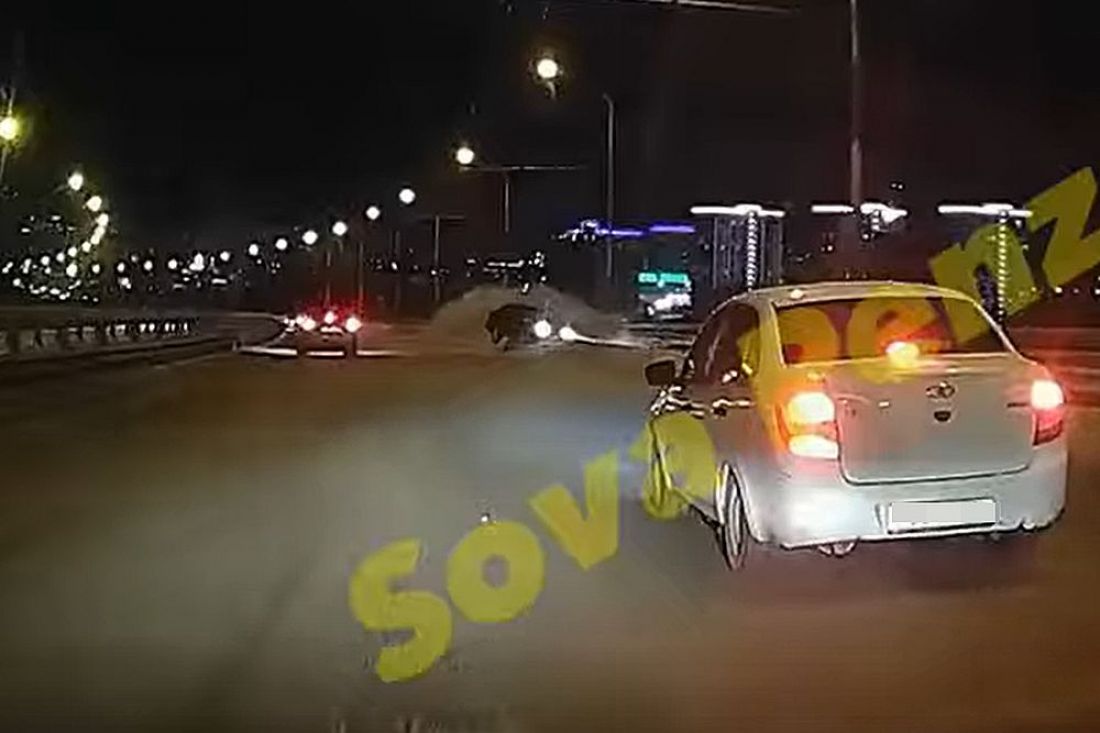 В четверг вечером на Арбековском путепроводе в Пензе произошла авария, момент которой оказался зафиксирован камерой видеорегистратора.