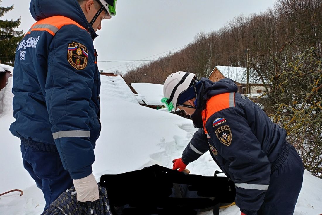 Спасатели прибыли на место происшествия, где с помощью альпинистского снаряжения на спинальном щите сняли с крыши дома тело мужчины. Его передали сотрудникам скорой помощи и полиции.