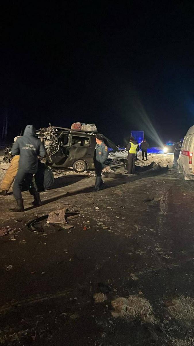 В результате аварии погибли 7 человек. Произошло столкновение грузовика и минивена.