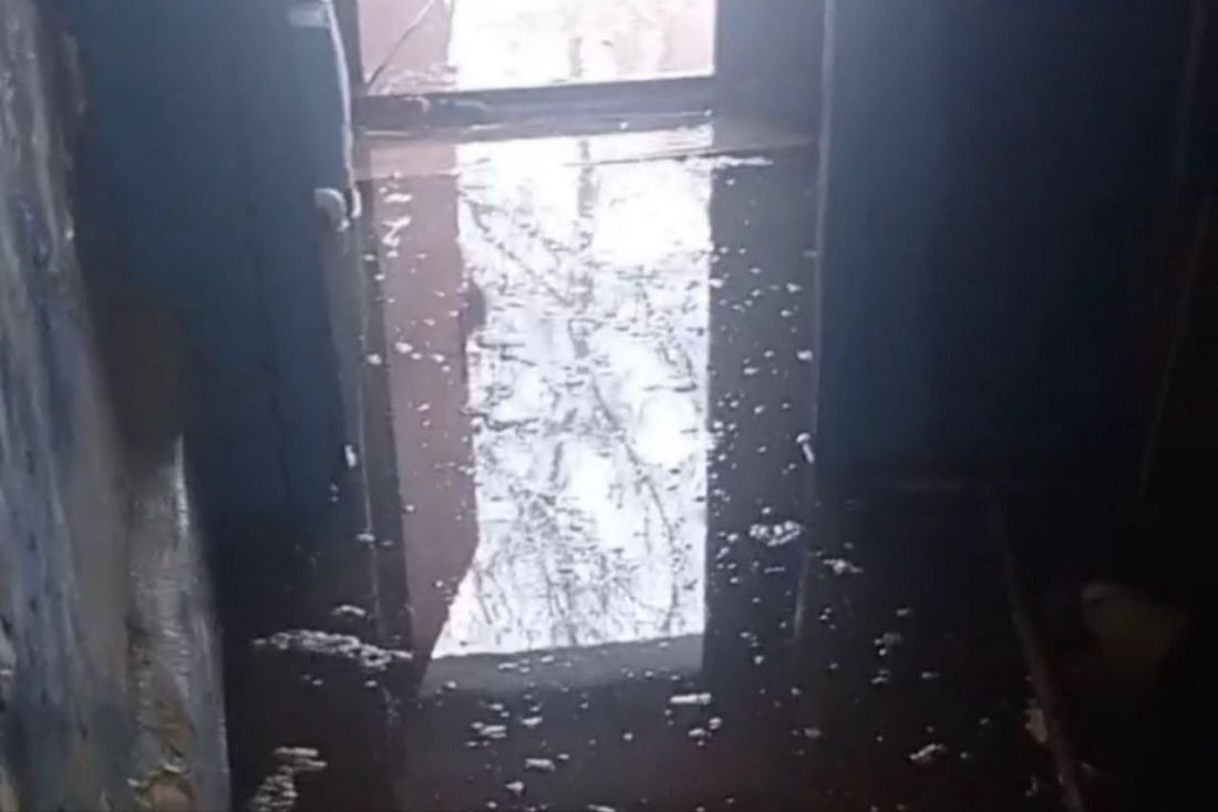 На кадрах видно, что в результате порыва затопило нижние ступени лестничной клетки. Выйти из помещения оказалось невозможно из-за высокого уровня воды.