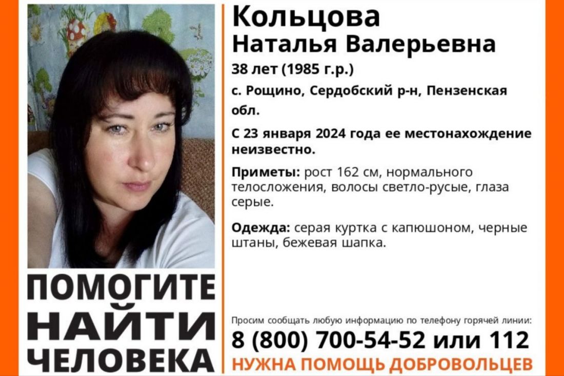 Волонтеры просят помочь в поисках Натальи Кольцовой из села Рощино Сердобского района.