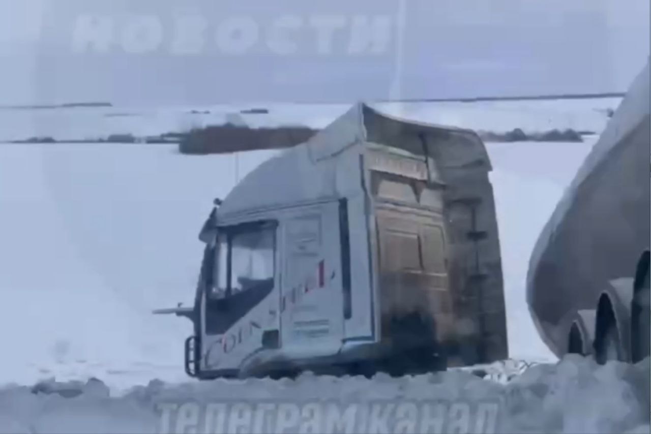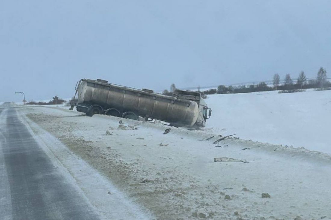 На фотографиях видно, что дорожно-транспортное происшествие не затруднило проезд для других машин. По словам пользователей, большегруз слетел с трассы, а в дальнейшем допустил опрокидование.