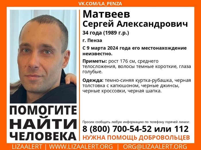По информации волонтеров в социальной сети «ВКонтакте», сведений о местонахождении пензенца нет с 9 марта 2024 года.